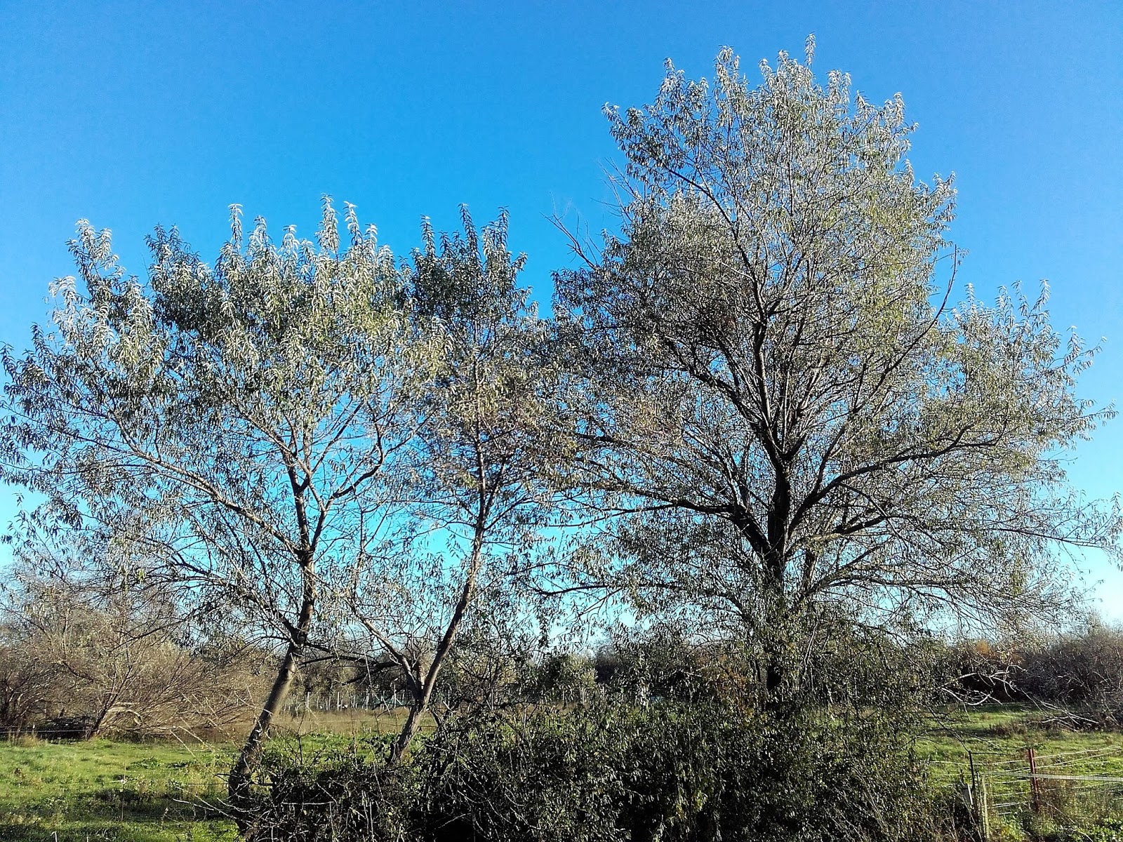 Eilen seikkailimme vaihteeksi kaupunkimaisemissa Narbonnessa, tänään palasimme mielellämme takaisin tuttuihin päivärutiineihimme ja lähdimme hiukan ennen puolta päivää koirien kanssa lähijoen varteen kävelylle. Ajattelin kävellessämme, että yllättävän moni puu on säilyttänyt lehtensä ja osalla nämä lehdet ovat jopa vielä vihreät. Paljon oli puulajeja, jotka ovat jo aikaa sitten pudottaneet lehtensä, harmi vaan, kun en tunne täkäläistä puustoa juuri ollenkaan. Vaellusreissulla joku aina tunnistaa nimeten puulajeja ja muita kasveja, vaan niinpä ne painuvat mielestä unholaan.